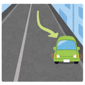 徐々にスピードを落とし安全な場所(道路の左側、または広い路肩)に停車。